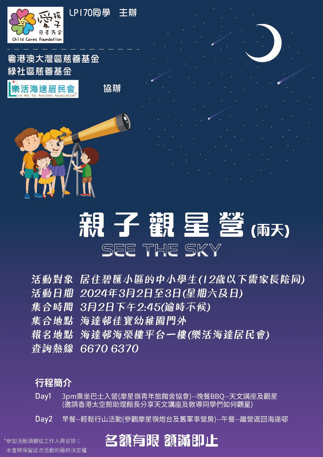 2024年3月2至3日,愛孩子慈善基金與LP170同學聯合主辦的【親子觀星營】圓滿結束啦!🌌