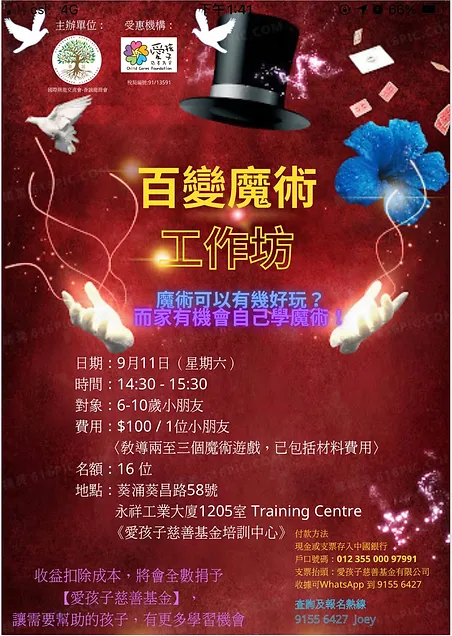 魔術世界充滿無限可能,而這次的「百變魔術工作坊」,特別為小朋友們帶來一小時的奇幻體驗!透過導師細心指導,孩子們不但認識了魔術的基本技巧,還親手製作並學會兩至三個有趣魔術遊戲。