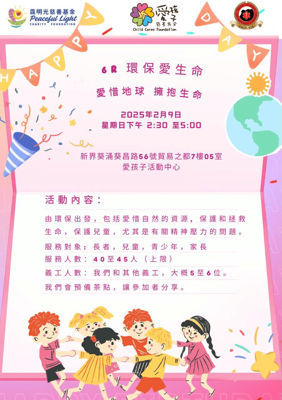 由藹明光慈善基金聯同愛孩子慈善基金合辦的「6R 環保愛生命」活動,已於2025年2月9日圓滿結束!