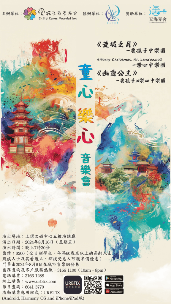 愛孩子慈善基金 x 樂心中樂團 聯合呈獻的「童心樂心音樂會」已於2024年8月16日,假上環文娛中心圓滿舉行,